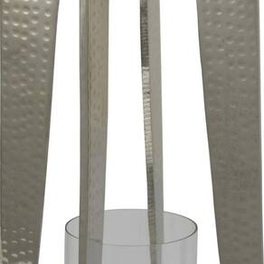 - O acabamento prateado eleva a estética moderna. Estrutura metálica elegante com uma sombra de vidro para furacões.
