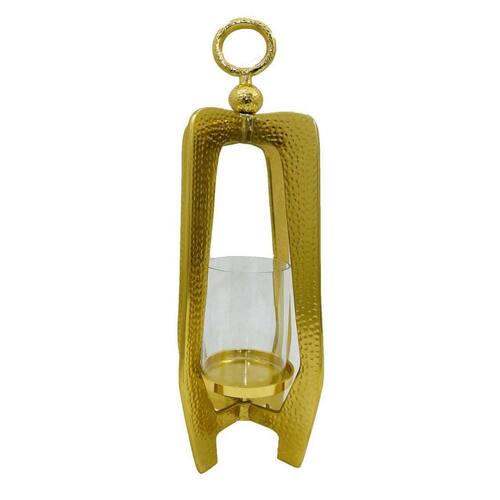 Lanterna de mesa Benjara Dolk de 27 polegadas, formato antigo, corpo de vidro, estrutura de metal dourado