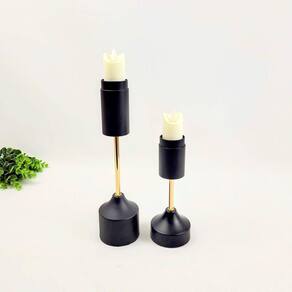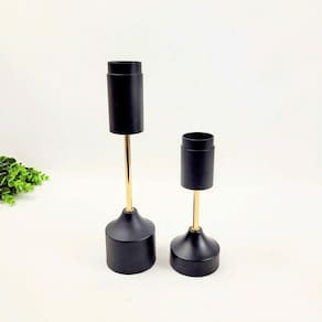 Castiçal Candelabro Metal Preto Dourado 32/22cm Kit 2pc Ilumine seu Ambiente com Elegância: Conjunto de Castiçais em Metal com Velas de LED Inigual Decor Descrição: Adicione um toque de charme e sofisticação à sua decoração com o Conjunto de Castiçais em Metal com Velas de LED da Inigual Decor. Este conjunto elegante de castiçais é perfeito para criar uma atmosfera acolhedora e romântica em qualquer ambiente, sem se preocupar com a segurança das velas tradicionais. Cada castiçal é cuidadosamente trabalhado em metal de alta qualidade, apresentando um design elegante e atemporal que se adapta a uma variedade de estilos de decoração. As velas de LED incluídas proporcionam um brilho suave e reconfortante, imitando perfeitamente a luz das velas tradicionais sem o risco de incêndios ou fumaça. Características: