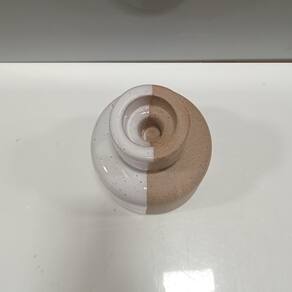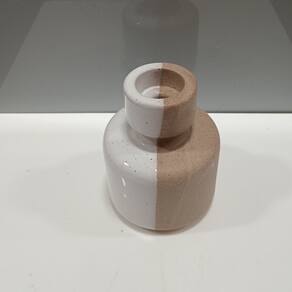 Altura: 16 cm Largura: 12 cm Profundidade: 12 cm Espessura: 1,2 cm Peso: 0,65 Kg Diâmetro da Base: 10,5 cm Diâmetro do Topo: 4,5 cm Material: Ceramica Cor: Bege