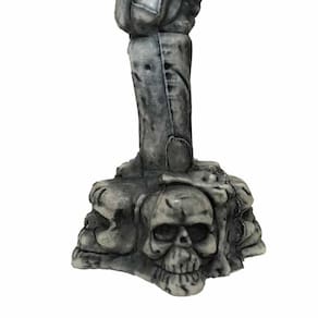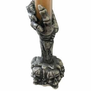 O Castiçal com Vela Laranja LED é fabricada em plástico de qualidade e vem com uma base com caveiras e uma mão de esqueleto segurando a vela, a vela é feita em um acrílico transparente com estampa de morcegos e na parte interior glitter laranja para a vela brilhar ainda mais, na parte de cima do pavio da vela ela vem com um acrílico na laranja e na parte interior um LED que ilumina e deixa ainda mais estilosa a sua festa.