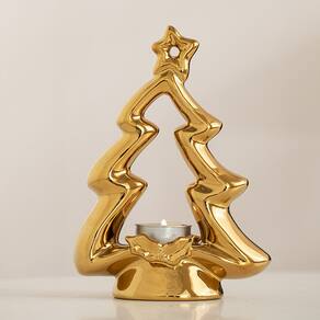 Material: cerâmica Cor: ouro Tamanho do produto: 18,5 x 14 x 7 cm Peso do produto: 0,4 kg Tamanho do pacote: 20 x 15 x 9 cm Peso do pacote: 0,5 kg Lista de embalagem: 1 x castiçal Decoração natalina elegante: este castiçal de árvore de Natal em cerâmica dourada traz calor e vibrações festivas a qualquer espaço, perfeito para adicionar um toque de luxo à sua decoração natalina ou como um presente encantador. Material cerâmico premium: feito de cerâmica de alta qualidade, este castiçal foi projetado para proporcionar durabilidade e beleza duradoura. Ele adiciona um toque sofisticado à decoração da sua casa, aprimorando a atmosfera natalina. Perfeito para o Natal: o design da árvore de Natal com topo de estrela e detalhes delicados torna este castiçal uma peça central de destaque, ideal para sua mesa de jantar de Natal ou lareira. Uso versátil: ideal para uso como peça decorativa e como castiçal funcional, este item contém uma vela à luz de chá para criar um ambiente aconchegante e festivo durante as férias. Ideia de presente atenciosa: o design elegante e o tema festivo fazem deste castiçal um excelente presente para familiares e amigos durante as festas de fim de ano, espalhando alegria e adicionando beleza a qualquer espaço.