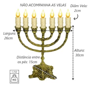 01 Castiçal de Metal Dourado Ouro Para 07 Velas 30x26x15cm.