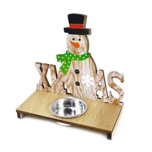 Enfeite Decorativo Natalino de Madeira Castiçal de Natal Boneco de Neve com Vela Led