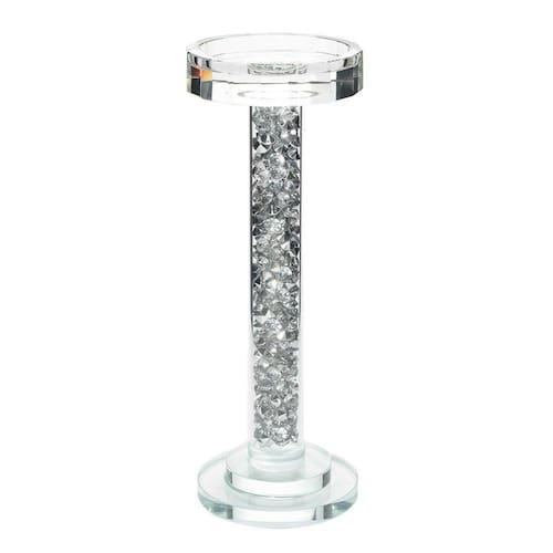 Castiçal De Vidro Detalhes Na Cor Prata 25Cm
