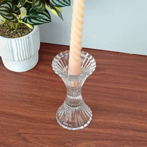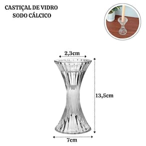 Adicione um toque de sofisticação e aconchego à sua decoração com o Castiçal de Vidro Sodo-Cálcico. Com design texturizado e transparente, este acessório combina a beleza clássica do vidro com um estilo clean e moderno.