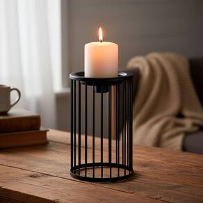 Altura: 18 cm Largura: 11 cm Profundidade: 11 cm Peso: 0,26 Kg Diâmetro da Base: 11 cm Diâmetro do Corpo: 11 cm Diâmetro do Topo: 11 cm Material: Metal Cor: Preto