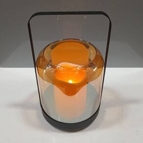 CÚPULA Altura: 15,5 cm Largura: 13,8 cm Profundidade: 13,8 cm Peso: 0,29 Kg Material: Vidro Cor: Âmbar