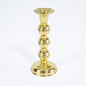 Castiçal Dourado de Latão Suporte 1 Vela Igreja 3 Bolas 15cm