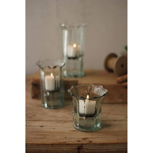 Conjunto Kalalou CV7044 de três cilindros votivos com nervuras de vidro reciclado, veja a imagem