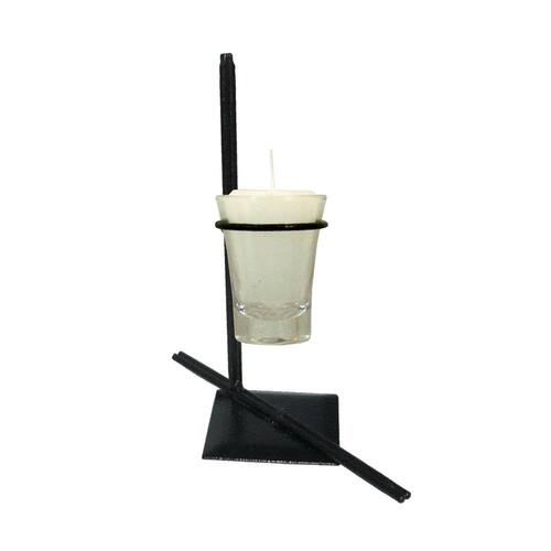 Castiçal L Acompanha 1 vela no copinho na cor branca Produtos da marca Velitas. Somos uma fábrica, de velas e ferros decorativos, desde de 1984 no mercado. Castiçal: Peça em ferro com pintura eletrostática, que garante uma maior resistência e durabilidade em comparação com peças esmaltadas ou com pintura spray. Pintura marrom escura, quase preta, com minúsculos pontos pretos e dourados. A pintura dá um efeito especial a peça. Peça produzida de forma artesanal. Medidas: Altura: 19 cm profundidade: 18 cm largura: 10 cm Copinho de vidro: O copo de vidro é da Nadir Figueiredo, além de ser resistente ele é facilmente encontrado em vários lugares no Brasil. Medidas do copo: altura: 7 cm diâmetro superior boca : 5,2 cm diâmetro inferior base : 3,5 cm Velas: Velas de parafina pura Petrobras, contêm apenas corante nas velas coloridas. A vela pura garante uma maior durabilidade, não produz fumaça preta que possa sujar a parede ou criar um aspecto desagradável, e também possui um cheiro suave e próprio da parafina. Nossas velas no copinho foram projetadas para fácil reposição já que são removíveis, o produto acompanha indicações de uso para facilitar a limpeza do copo após a utilização. Duração da vela: Aproximadamente 12 horas, o tempo pode variar de acordo com a temperatura ambiente. Medidas: altura: 5,2 cm diâmetro superior boca : 4,5 cm diâmetro inferior base : 2,7 cm Imagens meramente ilustrativas, o produto pode apresentar pequenas variações por se tratar de um produto artesanal. Aviso de segurança: Acenda as velas longe de produtos inflamáveis, de corrente de ar e em recipiente protetor. Não deixe velas acesas desacompanhadas. Marca: Velitas (r)