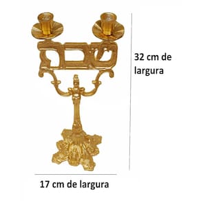 Tamanho 30 cm de altura, com 16 de largura, para velas de até 2 cm.