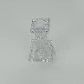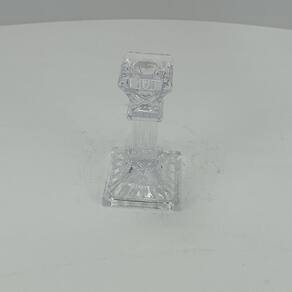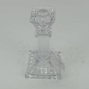 CASTIÇAL Altura: 15,8 cm Largura: 8,3 cm Profundidade: 8,3 cm Peso: 0,44 Kg Diâmetro da Base: 8,3 cm Diâmetro do Corpo: 2,4 cm Diâmetro do Topo: 5 cm Material: Vidro Cor: Transparente