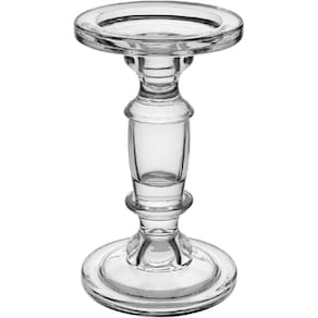 CASTIÇAL Altura: 19,3 cm Largura: 11,1 cm Profundidade: 11,1 cm Peso: 0,73 Kg Diâmetro do Corpo: 5 cm Material: Vidro Cor: Transparente
