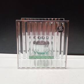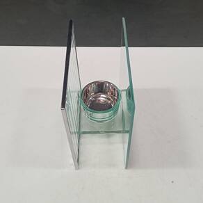 CASTIÇAL Altura: 11,8 cm Largura: 11,8 cm Profundidade: 6 cm Peso: 0,29 Kg Material: Vidro Cor: Transparente
