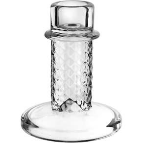 CASTIÇAL Altura: 10 cm Largura: 8 cm Profundidade: 8 cm Espessura: ,5 cm Peso: 0,22 Kg Diâmetro da Base: 8 cm Diâmetro do Corpo: 3,5 cm Diâmetro do Topo: 2,1 cm Material: Vidro Cor: Transparente