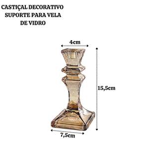 Informações Técnicas: Composição: Vidro. Altura: 15,5cm. Medida da base inferior: 7,5x7,5cm. Medida da base superior: 4x4cm. Diâmetro onde coloca vela:2,5cm. Peso: 386gramas. Validade: Indeterminada.