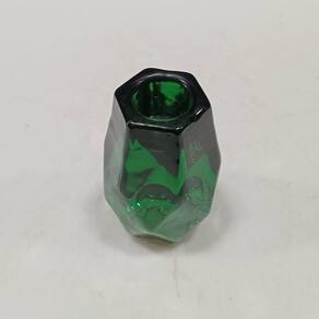 CASTIÇAL Altura: 7,5 cm Largura: 5,2 cm Profundidade: 5,2 cm Espessura: ,6 cm Peso: 0,25 Kg Diâmetro da Base: 4 cm Diâmetro do Topo: 3,5 cm Material: Vidro Cor: Verde
