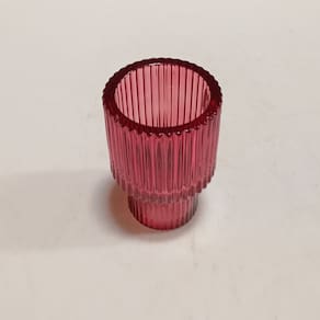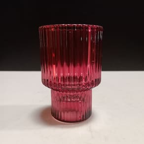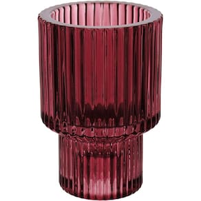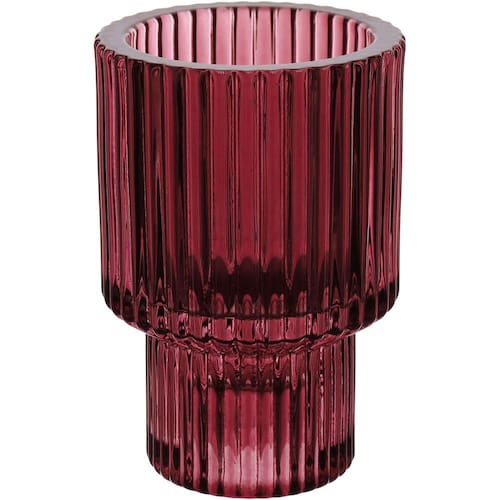 CASTIÇAL Altura: 8,1 cm Largura: 5,5 cm Profundidade: 5,5 cm Espessura: ,4 cm Peso: 0,20 Kg Diâmetro do Topo: 3,8 cm Material: Vidro Cor: Vinho