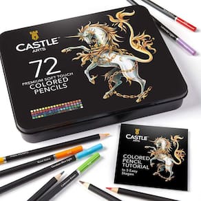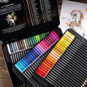 Castle Art Supplies 72 Lápis De Cor Série Premium Suave 72 lápis de cor de colorir para adultos; Série premium atualizada Série suave, em cores vivas da Castle Art Supplies. Sobre este artigo Qualidade Artística Aprimorada - Lápis de cor que competem com marcas líderes na seleção de cores e alto teor de pigmento. Qualidade - Mais uma vez, a Castle Art Supplies oferece um valor excepcional com 72 cores vibrantes, embaladas com capricho em uma caixa de lata de apresentação deslumbrante, ideal para artistas iniciantes, material escolar e profissionais. Fortes e confiáveis - Núcleo de para protegê-los de quebras frustrantes durante o uso geral e afiados para que você possa pintar com confiança. Série soft de luxo - para melhor combinação, sombreamento e camadas. Ouvimos seus comentários e desenvolvemos esses lápis supermacios para melhorar o desempenho.