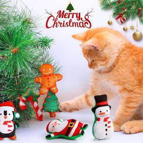 - Design de Natal: os brinquedos de Natal para gatos são desenhados em 6 formas diferentes, como Papai Noel, boneco de neve, árvore de Natal, boneco de gengibre, etc.; combinados com cores vivas, fofos e interessantes