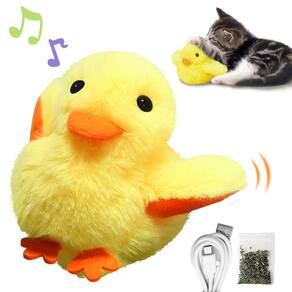 -?Brinquedos interativos para gatos?Sempre que seu gatinho tocar ou dar um tapa nas costas do patinho, o sensor de movimento automático embutido será ativado e o patinho vibrará suas asas e grasnará, atraindo assim seu gato para interagir e brincar com ele.