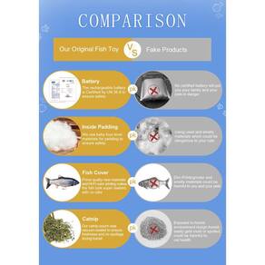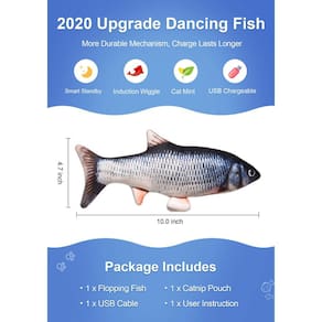 - [Presente perfeito]: mostre ao seu amigo felino o peixe fofo com um brinquedo para mastigar para gatos! Com sua erva-dos-gatos e movimentos realistas, seu peixe dançante de baixo ruído certamente será um novo brinquedo favorito para seu animal de estimação e para você ou crianças!