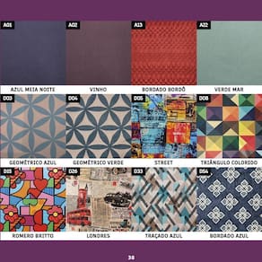 ***Demonstrativo de estampas e cores, compras efetivadas neste anúncio serão automaticamente canceladas.*** Catálogo de Tecidos para Poltronas, Puffs e Sofás-Retrô - D'Rossi Aqui você pode visualizar nossos tecidos em linha, escolha o revestimento ideal para sua Poltrona, puff ou sofá-retrô! Como comprar meu produto com um tecido do catálogo personalizado? 1- Escolha o modelo de poltrona, puff ou sofá-retrô de você deseja comprar; 2- Procure no catálogo o revestimento que você mais gostou, salve o nome dele; 3- Faça a compra diretamente no anúncio do modelo de poltrona, puff ou sofá-retrô que você gostou, independente do revestimento anunciado. 4- Especifique nas mensagens da compra o nome do revestimento que você deseja em seu produto. - Atenção: Os tecidos deste catálogo estão sujeitos à alteração do preço final no produto. - Atenção: As cores dos tecidos pode sofrer variações, devido ao lote e/ou a resolução do monitor e/ou iluminação do ambiente. - Qualquer dúvida nos mande uma pergunta. D'Rossi interiores