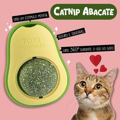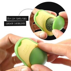 Seu design em formato de abacate é projetado para manter o catnip durável por mais tempo e sem perder o aroma, podendo deixa-lo exposto para o gato ou cobri-lo com a tampa