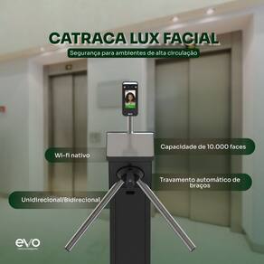 A Catraca LUX EVO Facial + Cartão Proximidade da EVO representa o que há de mais moderno e confiável em controle de acesso. Projetada para ambientes que valorizam requinte e refinamento, seu design arrojado e elegante se integra perfeitamente. Equipada com um robusto terminal de reconhecimento facial, esta catraca oferece uma solução completa para a gestão de fluxo de pessoas em diversos espaços, como academias, clubes, indústrias, refeitórios, e condomínios comerciais e residenciais. Sua estrutura conta com tratamento anticorrosivo, reforços estruturais e um sistema de amortecimento de giro dos braços, garantindo durabilidade e funcionamento suave. A iluminação frontal em verde e a indicação sonora aprimoram a experiência do usuário, tornando-a uma escolha ideal para quem busca segurança e eficiência.