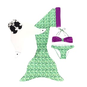 • As caudas são indicadas para crianças acima de 7 anos que já nadam muito bem, acompanhadas de um adulto. • Informações de segurança constam no manual que acompanha a cauda. • O kit contém uma cauda de lycra, biquíni completo e nadadeira básica exclusiva e patenteada Sirenita® com sapatilha regulável. • Composição da Cauda de Sereia: 90% Poliéster 10% Elastano / Composição do forro: 100% poliamida