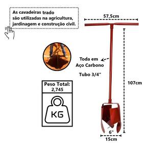 Cavadeira Trado Cabo em Tubo Aço Carbono 06pol 107cm, a cavadeira trado é uma ferramenta indispensável ??para abrir buracos, transplantar plantas, colocar postes, abrir valas para canos ou cavar e retirar a terra sem grande esforço. Tem por finalidade a coleta de amostras deformadas, determinação de profundidade do nível d'água e identificação dos horizontes do terreno.