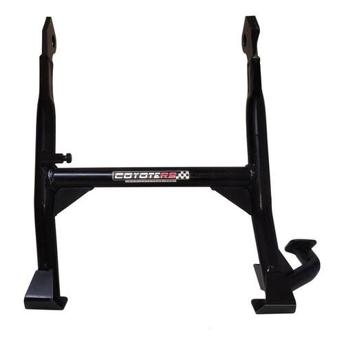 CAVALETE CENTRAL TIGER 800 XR, XC, XRX, XCX, XRT E XCA ANO 2012 ATÉ 2020O cavalete central COYOTE é desenvolvido para elevar o centro da motocicleta, suspendendo a parte traseira ou dianteira facilitando manutenções simples como troca de pneu, limpeza e lubrificação de corrente, alinhamento da roda e do cubo, entre outras. Diferentemente dos modelos de cavaletes traseiro, os cavaletes centrais são instalados na moto, podendo ser acionado a qualquer momento e em qualquer local. Isso ocorre porque sua mola ultra resistente, mantém o cavalete recuado quando não está em uso, alinhado ao seu design funcional e discreto facilitando assim o seu acionamento. Este acessório é indicado para todas as motos, mesmo que não venham instalado de fábrica. Matéria-prima selecionada, máquinas de corte a laser de última geração, solda robotizada e pintura eletrostática garantem o produto de melhor qualidade do mercado. Dentro da embalagem acompanham todos os parafusos, tuchos e suportes necessários para a devida instalação na qual recomendamos que seja feita por um profissional da área. Especificações Técnicas: Material: Produzido com tubos de aço carbono de espessura 2mm e 1” (polegada). Pintura: Eletrostática Epóxi na cor Preto Fosco, com tratamento contra corrosão. Solda Robotizada: Todo o processo de soldagem é realizado por robôs de alta tecnologia e última geração. Código do Produto: CC084