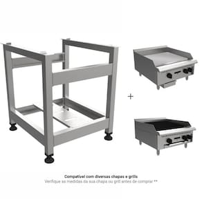 Características Técnicas: Altura ideal para ergonomia: cozinhe sem se curvar, prevenindo dores nas costas e fadiga Estrutura robusta em aço inox: resistente à corrosão e fácil de limpar Compatível com diversas chapas e grills (Verifique as medidas da sua chapa ou grill antes de comprar) Maior conforto e ergonomia no trabalho Montagem descomplicada e garantia de estabilidade Prateleira inferior destinado ao armazenamento de utensílios de cozinha Pés niveladores de borracha antiderrapante que facilitam o ajuste e o melhor posicionamento do cavalete