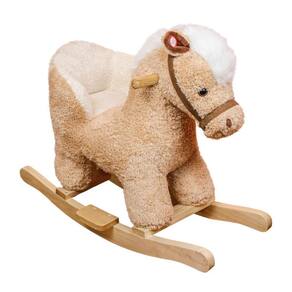 Cavalo de balanço musical com assento O Cavalo musical de balanço com assento é ideal para completar a decoração do quarto do bebê. Confeccionado em pelúcia com pés e apoio de mãos em madeira que permite o balanço seguro e confortável a criança pode brincar e se divertir sozinha, apertando a orelha emite som com fácil manuseio ideal para crianças ate 3 anos.