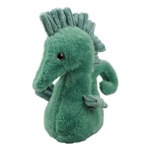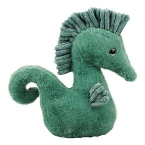 Apresentamos um adorável cavalo marinho de pelúcia com 27 cm de altura na cor verde. Seus olhos são de plástico e o produto é certificado pelo ICEPEX, um órgão acreditado pela CGCRE do INMETRO.