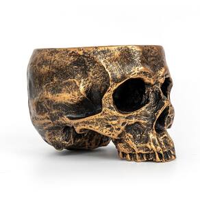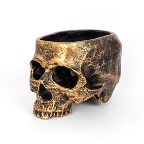 Material: resina Peso: 600 g Tamanho: 16,5 x 13 x 13,5 cm Design de caveira gótica — Vaso artístico em forma de caveira com acabamento metálico, perfeito para criar uma declaração decorativa misteriosa e ousada. Construção durável em resina — Feita de resina de alta qualidade, resistente e leve, resistente ao desbotamento e rachaduras para uso duradouro. Ideal para suculentas e ervas — Vaso compacto adequado para suculentas, cactos, flores pequenas ou ervas, realçando a vegetação com charme gótico. Decoração versátil — Ótima para desktops, varandas, pátios, jardins ou festas de Halloween, combinando plantação funcional com decoração de arte de terror. Dimensões do produto — mede 16,5 x 13 x 13,5 cm, pesa 600 g; tamanho portátil, fácil de colocar em mesas, parapeitos de janelas ou prateleiras de escritório.