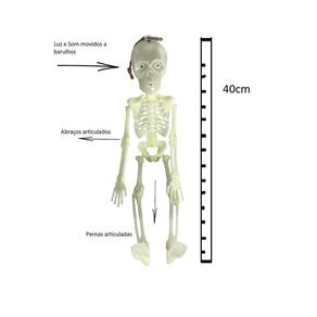 Decoração Halloween Caveira Com Luz E Som Articulada 40Cm