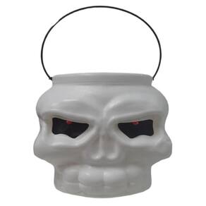 Caveira balde - halloween10 unidadebalde caveira halloween em plástico, com adesivo colado nos olhos. Ideal para colocar doces ou salgados e compor lindas decorações a mesa ou presentear os convidados da sua festa.Informações do produtomaterial: plástico e adesivos;medida da caveira: 16 x 16cm;medida da alça: 30cm;medida da parte aberta: 10cm;peso: 100g;cor: branco;marca: bellavalidade indeterminada;indicado para crianças acima de 3 anos.Atenção - não acenda vela dentro da caveira. Ean: 7904399443390