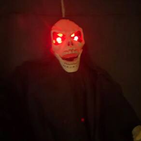 A Caveira Fantasma certamente lhe dará arrepios. Possui olhos iluminados e sons de horror que criam um efeito arrepiante, tornando-o perfeito para decorações de Halloween ou casas mal-assombradas.
