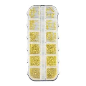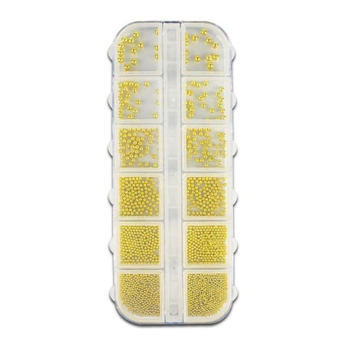 01 - Caixa com 12 Divisórias, com Caviar para Decoração de Unhas, Dourado, Diversos Tamanhos.