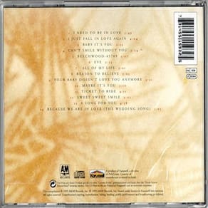 Foi lançado em 1998 e, em vez de conter seus maiores sucessos, esta compilação inclui remixes de suas músicas menos conhecidas, que não foram bem nas paradas ou não foram lançadas como singles. Faixas 1. I need to be in love 2. I just fall in love again 3. Baby its you 4. Cant smile without you 5. Beechwood 4-5789 6. Eve 7. All of my life 8. Reason to believe 9. Your baby doesnt love you anymore 10. Maybe its you 11. Ticket to ride 12. Sweet sweet smile 13. A song for you 14. Because we are in love the wedding song Marca: Não Informado