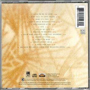 Foi lançado em 1998 e, em vez de conter seus maiores sucessos, esta compilação inclui remixes de suas músicas menos conhecidas, que não foram bem nas paradas ou não foram lançadas como singles. Faixas 1. I need to be in love 2. I just fall in love again 3. Baby its you 4. Cant smile without you 5. Beechwood 4-5789 6. Eve 7. All of my life 8. Reason to believe 9. Your baby doesnt love you anymore 10. Maybe its you 11. Ticket to ride 12. Sweet sweet smile 13. A song for you 14. Because we are in love the wedding song Marca: Não Informado Ean: 731455159325