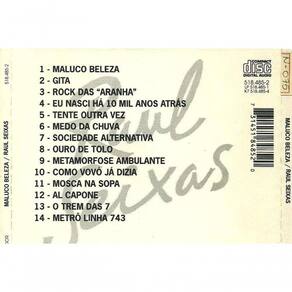 Cd Raul Seixas - Maluco Beleza Faixas Maluco Beleza, 2- Gita, 3- Rock Das Aranha, 4- Eu Nasci Há 10 Mil Anos Atrás, 5- Tente Outra Vez, 6- Medo Da Chuva, 7- Sociedade Alternativa, 8- Ouro de Tolo, 9- Metamorfose Ambulante, 10- Como Vovó Já Dizia, 11- Mosca Na Sopa, 12- Alcapone, 13- O Trem Das 7, 14- Metrô Linha 743. Ficha Técnica Classificação Indicativa: Livre Faixas Adicionais: Não Físico/Digital: Físico Gênero: Rock Nacional Nome do Artista: Raul Seixas Nome do álbum: Raul Seixas - Maluco Beleza País de Origem: Brasil Quantidade de Discos: 1 Quantidade de Músicas: 14