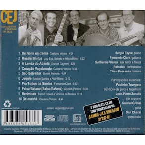 A CEJ - Companhia Estadual de Jazz é um quinteto formado por Sergio Fayne piano , Guilherme Vianna sax tenor, sax soprano e flauta , Fernando Clark guitarra , Chico Pessanha bateria e Reinaldo, aquele do Casseta & Planeta, contrabaixo . O disco Via Bahia contém algumas jóias da música brasileira que, por algum motivo, têm a ver com a Bahia. Desde A Lenda do Abaeté, de Dorival Caymmi, e Mestre Bimba do Tamba Trio, em homenagem ao mestre capoeirista baiano , até o samba Baiana, de Geraldo Pereira, tocado em forma de salsa Salsa Baiana . Participações especiais do saxofonista Jean-Pierre Zanella, de Paulinho do Trompete tocando flugelhorn e trombone de pisto , do gaitista Gabriel Grossi e do percussionista Don Chacal. Repertório: 1 De noite na cama Caetano Veloso 2 Mestre Bimba Luiz Eça, Bebeto e Hélcio Milito 3 A lenda do Abaeté Dorival Caymmi 4 Coração vagabundo Caetano Veloso 5 São Salvador Durval Ferreira 6 Jequié Moacir Santos e Aldir Blanc 7 Pra todos os santos Fernando Clark 8 Baiana Salsa Baiana Geraldo Pereira 9 Berimbau Baden Powell e Vinicius de Moraes 10 De manhã Caetano Veloso Marca: Não Informado