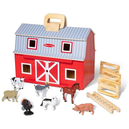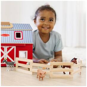 Este é um celeiro de madeira portátil, perfeito para jovens agricultores se divertirem na fazenda. O celeiro vermelho brilhante de dois andares é abastecido com 7 animais de fazenda de plástico realistas, uma escada de madeira e um curral dobrável. As portas deslizantes permitem a entrada e saída dos animais do celeiro, enquanto a cerca dobrável pode ser ajustada em vários formatos. O conjunto é feito de madeira forte e de alta qualidade e inclui uma alça robusta para facilitar o transporte. Este conjunto de brinquedos para animais de fazenda é uma ótima opção de jogo sem tela e promove o jogo imaginativo. É recomendado para crianças de 3 a 6 anos de idade. A Melissa Doug é uma empresa que cria produtos lindamente projetados há mais de 30 anos, estimulando a imaginação e a criatividade das crianças. Este conjunto faz parte de sua missão de retomar a infância, oferecendo às crianças um caminho para realizarem todo o seu potencial.