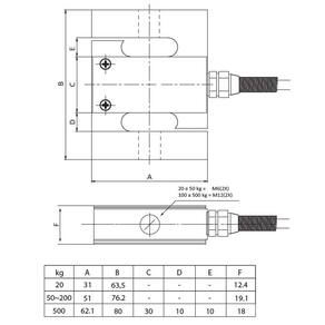 As células de carga de elevação mais utilizadas pela indústria. Características Principais Construída em alumínio;Grau de proteção IP65 para capacidades de até 200kg e IP66 para capacidades de 500kg;Cabo de 4 fios para capacidades até 200kg e cabo de 6 fios, com 5m de comprimento, para capadidades de 500kg. Marca: SP Sistemas
