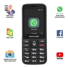 Celular Multilaser ZAPP II 2,4 Pol, Conexão 3G 512MB, Preto, KaiOS, Face, Whats - P9161 Celular Multilaser ZAPP II 2,4 Pol, Conexão 3G 512MB, Preto, KaiOS, Face, Whats - P9161