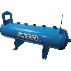 Central de Distribuição de Ar DH25-6 (mod.1) com 02 conexões nas calotas, 01 de 2'' e 01 de 1". 06 saídas superior de 1". Luvas laterais para acessórios de segurança (manômetro e válvula de segurança) de 1/4'' e luva inferior de 1/4'' (dreno). Pressão máxima de trabalho 12,3kg/cm. Dimensões; Altura: 350 mm, Comprimento total: 1030 mm, Diametro corpo: 180mm, Altura total com alça de movimentação: 430 mm. Acompanha documentação com certificado de teste hidrostático. **Este anúncio não contempla os acessórios de segurança (manômetro, válvula de segurança e dreno - necessários para uso) - podendo ser adquiridos separadamente.