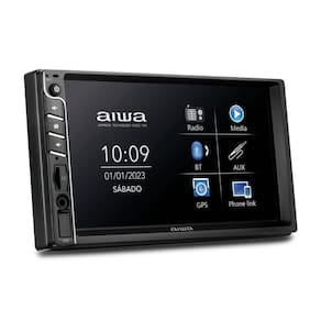 TELA DE 7 HD TOUCH SCREEN:A tela ampla de 7 polegadas e touch screen e tem resolucao HD (1024 x 600 pixels). Alem disso, a central multimidia AIWA possui uma interface intuitiva, com indicacao facil e descomplicada dos modos e funcoes. Garanta uma tela com design moderno e elegante para o interior do seu carro!